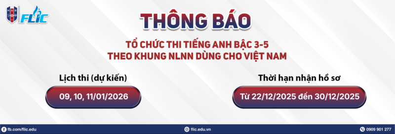 128 – Thông báo tổ chức thi và cấp chứng chỉ tiếng Anh bậc 3-5 theo Khung năng lực ngoại ngữ 6 bậc dùng cho Việt Nam – Dự kiến thi ngày 09, 10, 11/01/2026