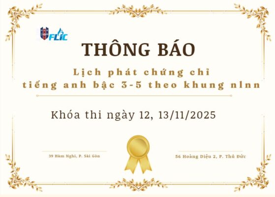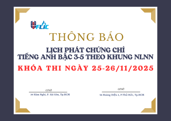 125 – Thông báo lịch phát chứng chỉ tiếng Anh bậc 3-5 theo Khung NLNN 6 bậc dùng cho Việt Nam – Khóa thi ngày 25, 26/11/2025